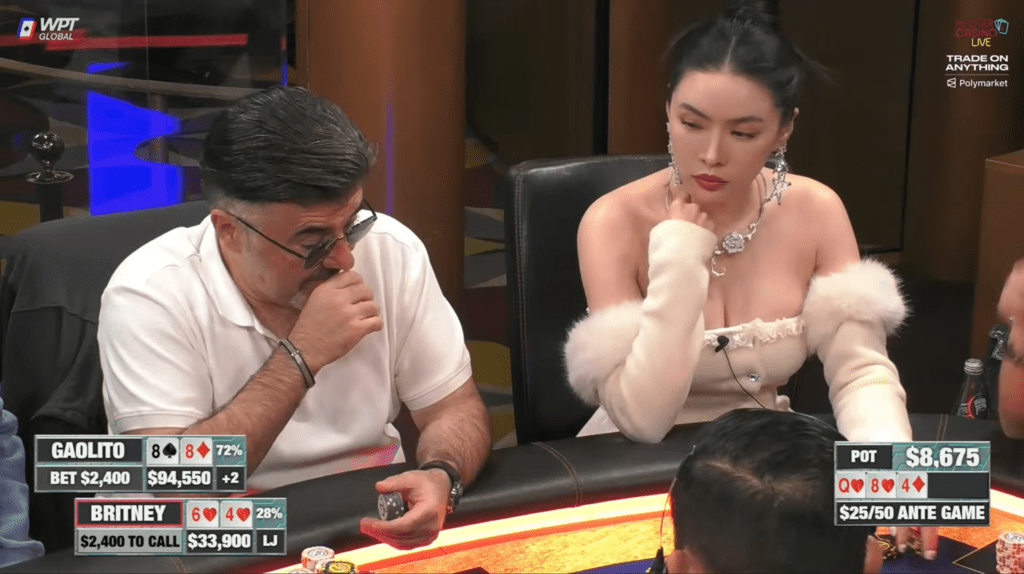 Gaolito continued for a small size of $2,400 into a pot of over $6,000, and Britney decided to apply maximum pressure and try to get a fold from her opponent. She moved all-in for $33,900, which might have worked had Gaolito’s hand been a little weaker.