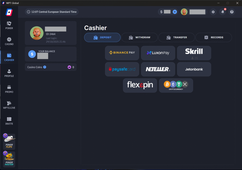 At WPT Global, players can make deposits and withdrawals using a range of traditional fiat payment options, as well as crypto deposits via Coinspaid or Cryptodirect.